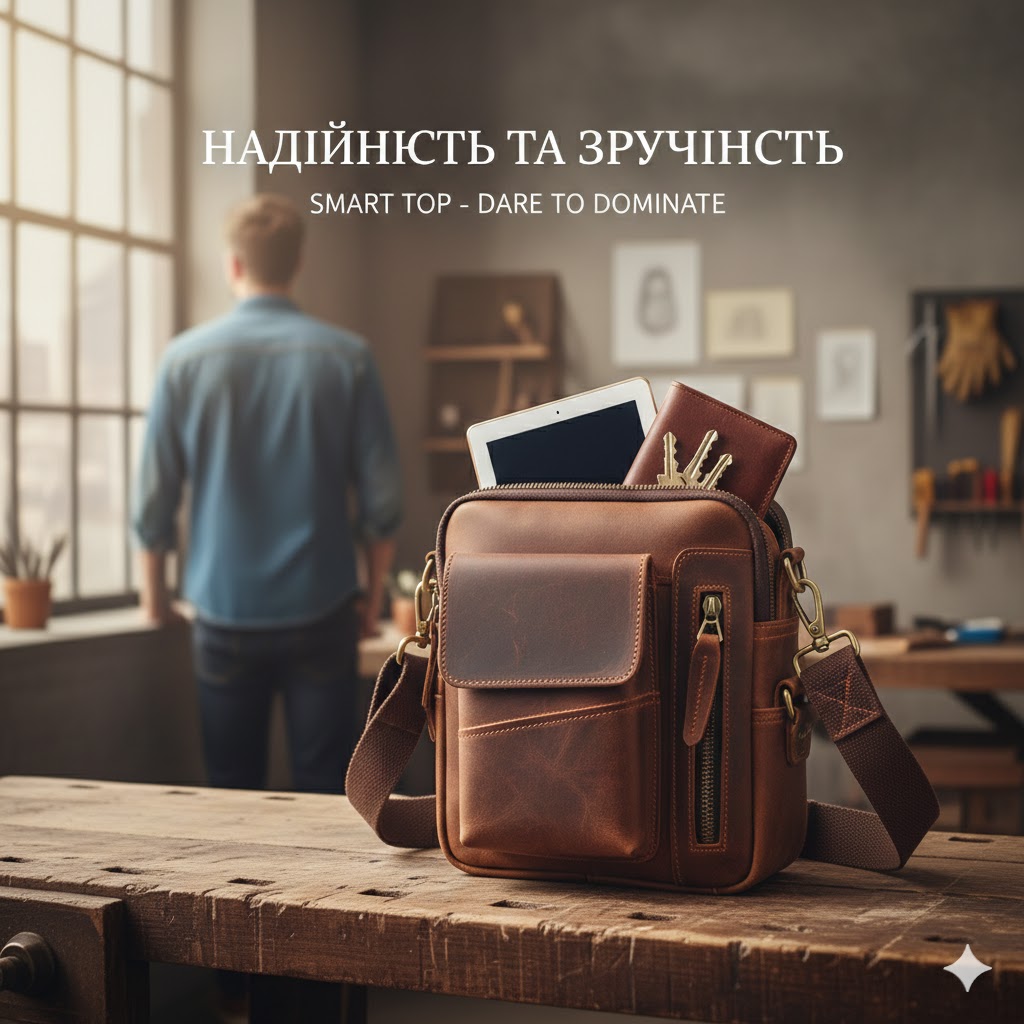 Цей аксесуар створений для чоловіків, які цінують баланс між суворою класикою та сучасною функціональністю. Сумка Smart Top — це не просто спосіб переносити речі, це деталь, яка мовчки заявляє про ваш статус і увагу до якості.
